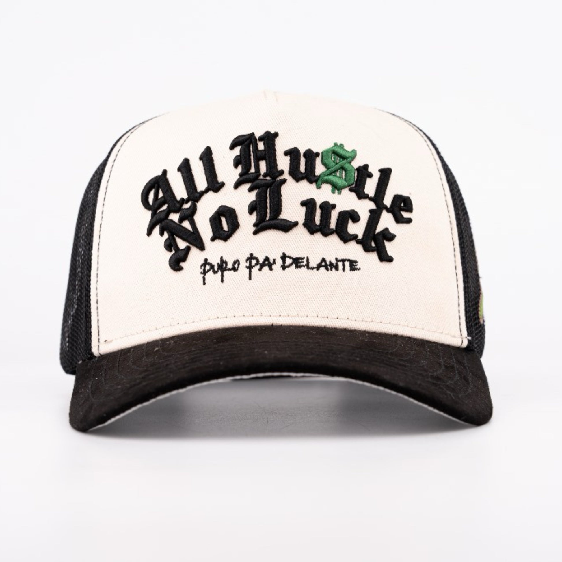 5. ALL HUSTLE NO LUCK OFF-WHITE & BLACK TRUCKER SNAPBACK (pre-order)